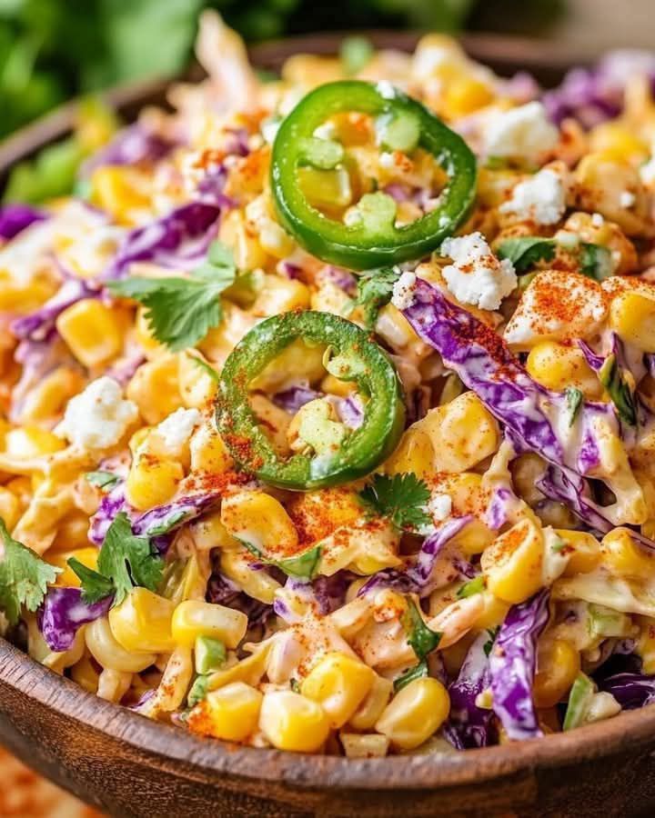A zesty twist on coleslaw with all the bold flavors of Mexican street corn—crunchy, creamy, and full of fiesta vibes!