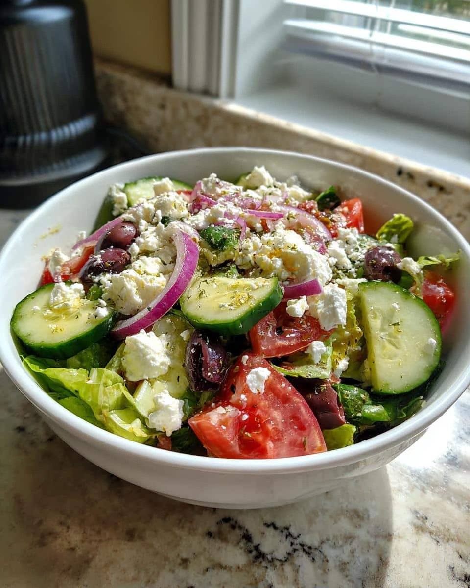 This chilled salad is everything you want on a warm day — crisp greens, juicy tomato, creamy feta, and a bright lemon-olive oil dressing. It’s light, flavorful, and ready in minutes. Serve it solo, pair it with grilled meats, or tuck it into a picnic basket.