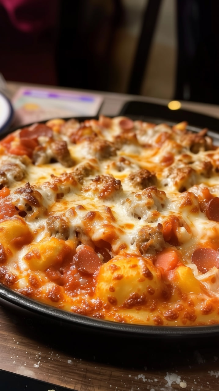 Start your day with a delicious, all-in-one breakfast! This easy pizza features a biscuit crust, a creamy sausage gravy base, fluffy scrambled eggs, and plenty of melted cheese.