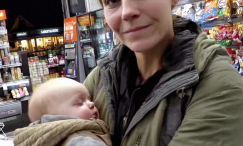 She came in around 11:30, moving like a prayer—slow, careful, a sleeping boy draped across her shoulder. Hair pulled back, sweatshirt worn thin, eyes hollowed out by a week’s worth of worry. She made a quiet loop through the aisles and placed three things on the counter: milk, bread, diapers. No extras. No indulgences. I told her the total and watched her count crumpled bills twice.