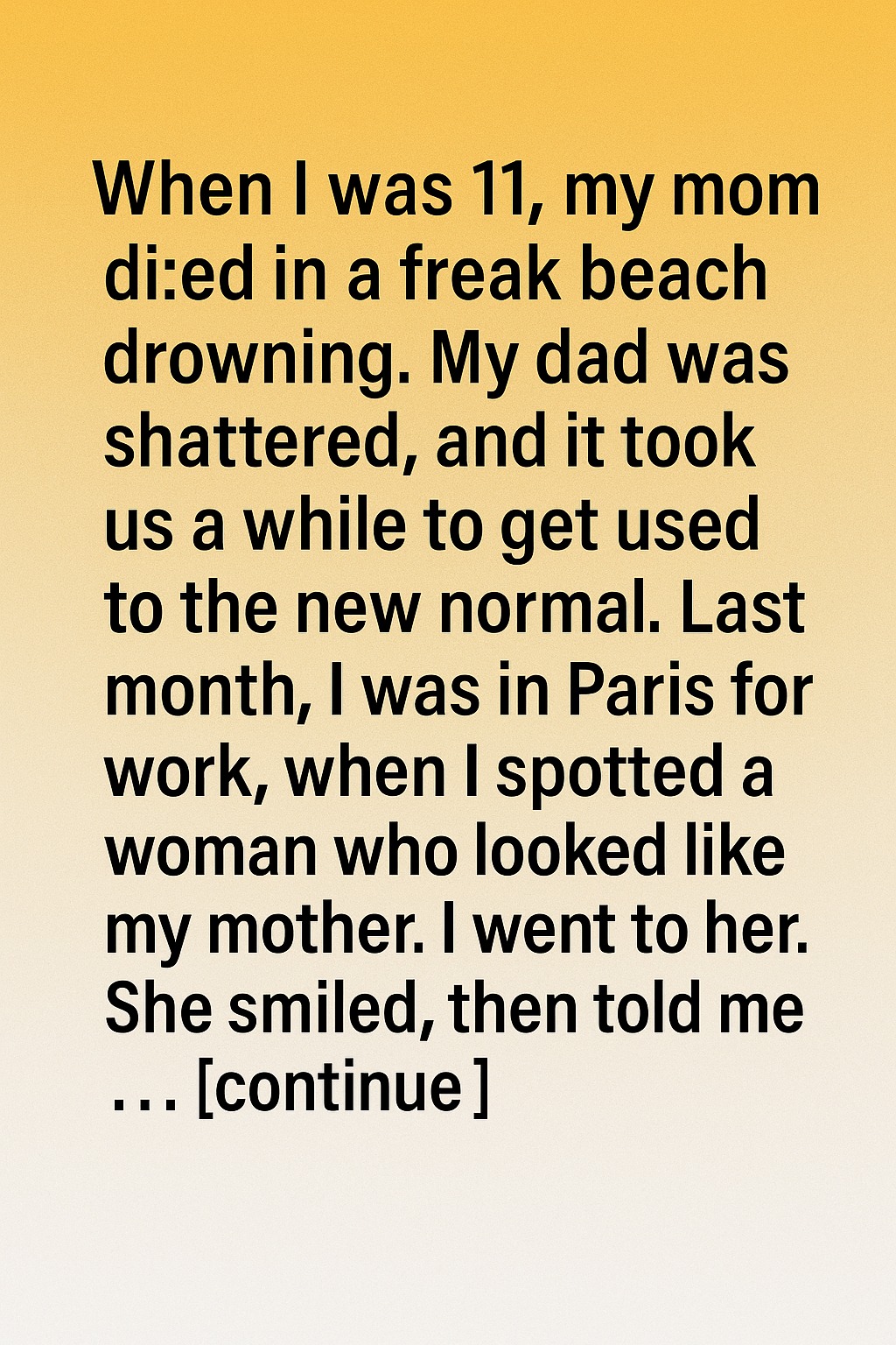 Last month, I traveled to Paris for work. After a long day of meetings, I decided to take a walk through a quiet street near Montmartre. That’s when I saw her — a woman who looked exactly like my mother. My heart raced as I stared in disbelief. It couldn’t be her… yet everything about her, from the way she tucked her hair behind her ear to the familiar twinkle in her eyes, felt so real.