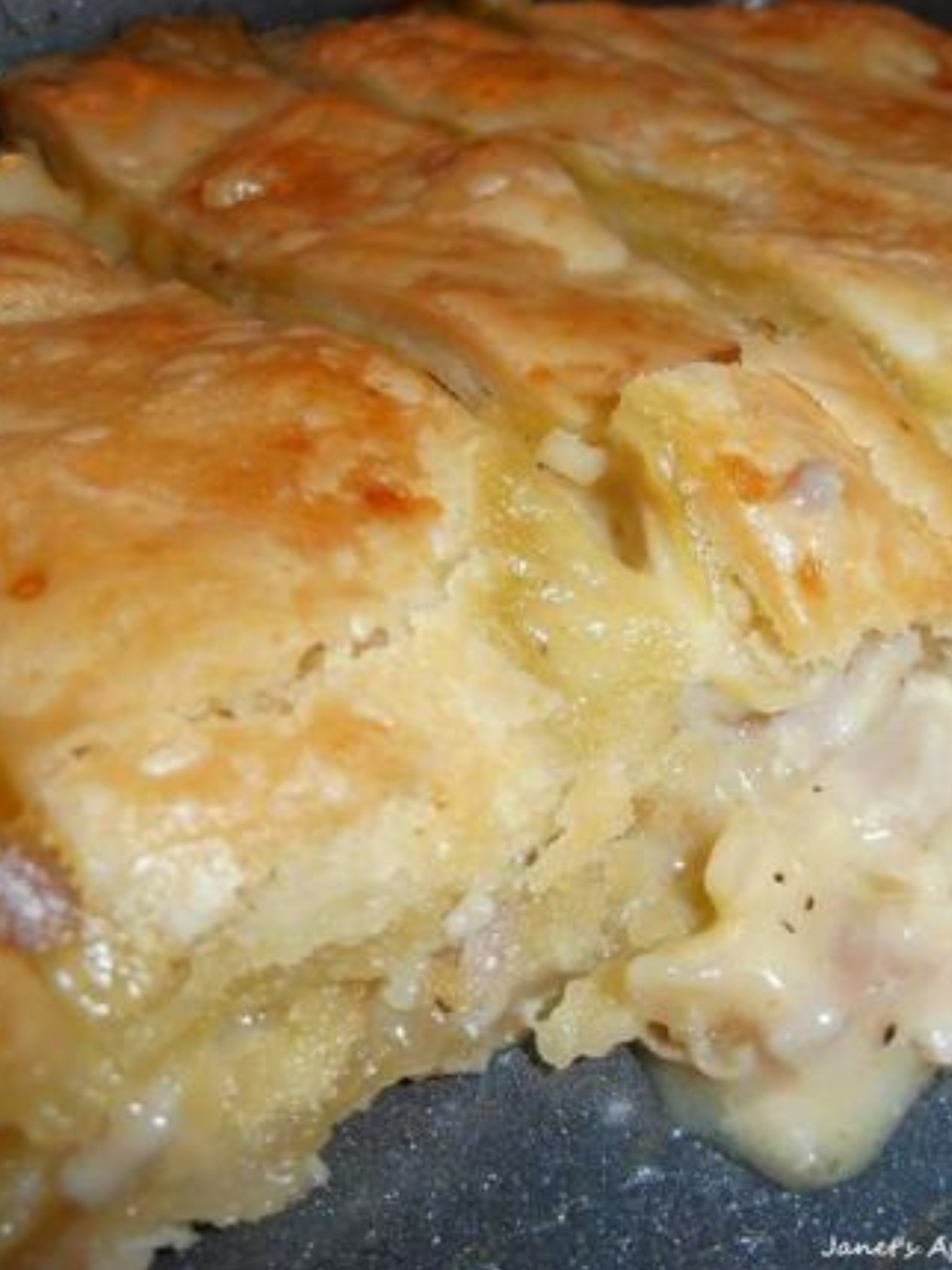 This old-fashioned chicken pie is pure comfort in a casserole dish. Tender chicken, creamy broth, and buttery pie crust come together in layers that bake to golden perfection. It’s simple, satisfying, and just like Mama used to make.