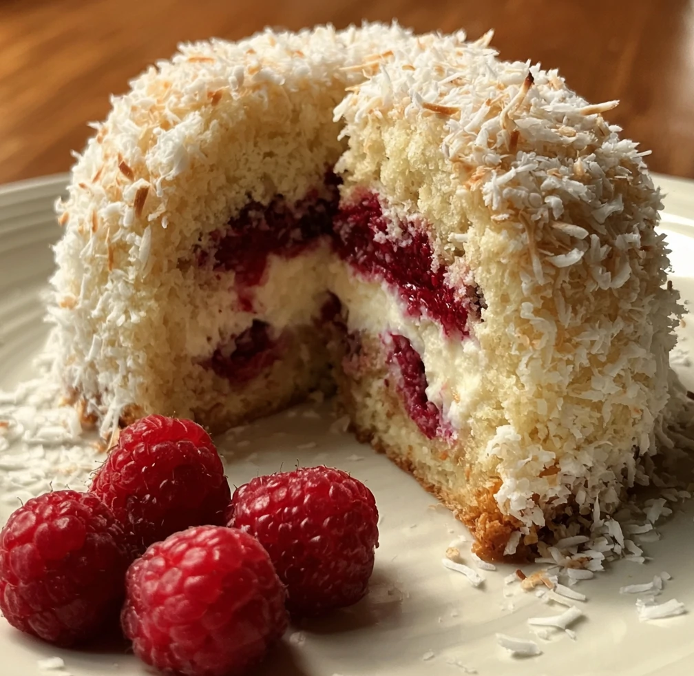 Raspberry coconut snowball cake solves both problems. You get a soft, fluffy cake soaked in creamy sweetness, topped with coconut and bursts of raspberry flavor. It’s easy to assemble, hard to mess up, and always looks impressive on the table.