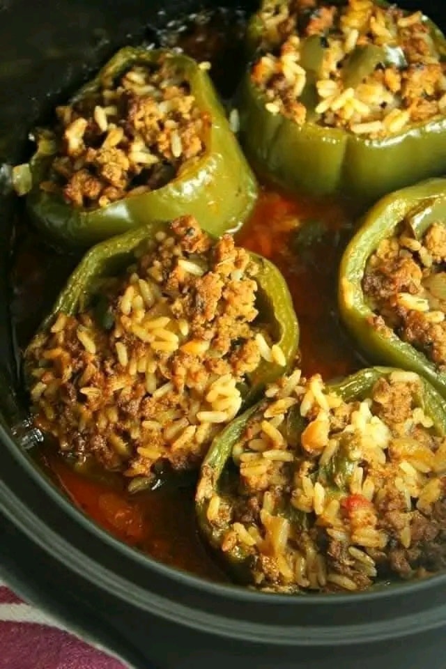 Tender bell peppers are stuffed with a savory, flavorful filling of beef and rice, then slow-cooked to perfection in a rich tomato sauce. This hands-off recipe is the ultimate comfort food that makes dinner a breeze.