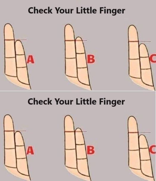Hold your hand out flat and compare the height of your pinky to the top joint of your ring finger. Where it lines up can say a lot: