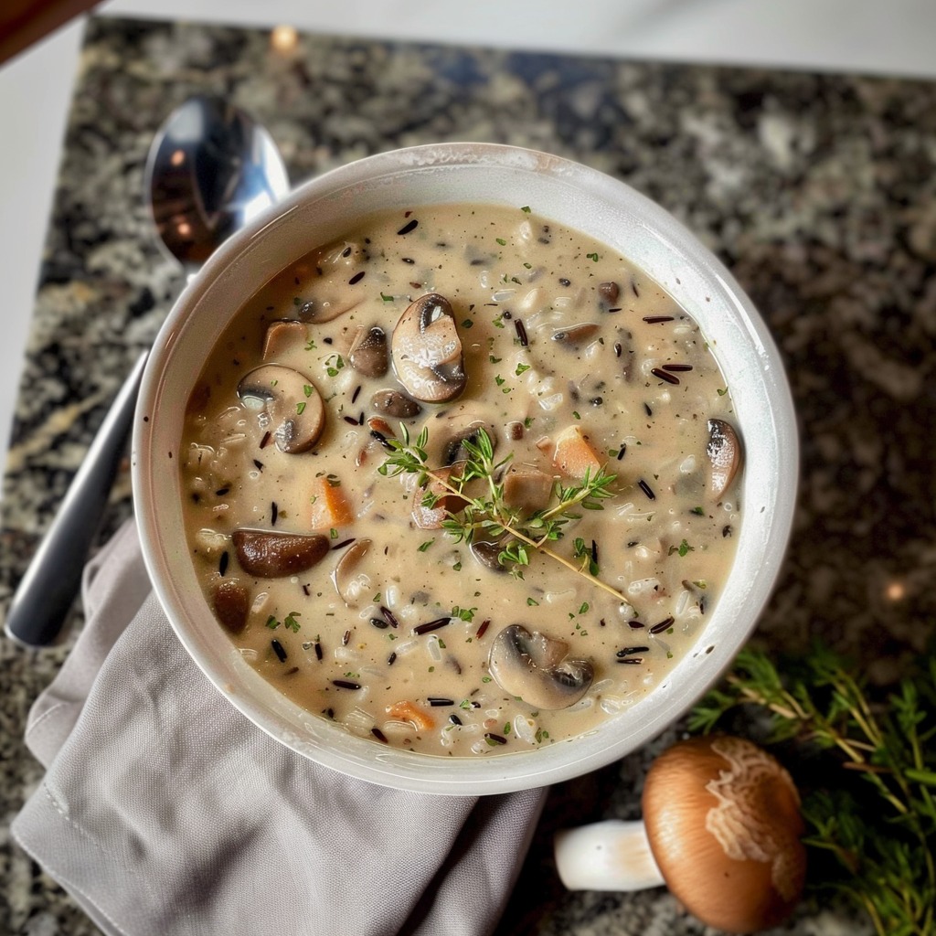 Wild Rice Mushroom Soup is a hearty, creamy, and delicious soup. Made with wild rice, fresh vegetables, and greens. This easy, comforting soup is packed with proteins and veggies! This recipe can be made vegan and gluten-free.